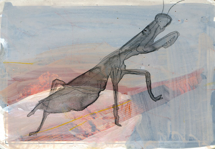 Gottesanbeterin 2011-Mischtechnik 10x15cm
