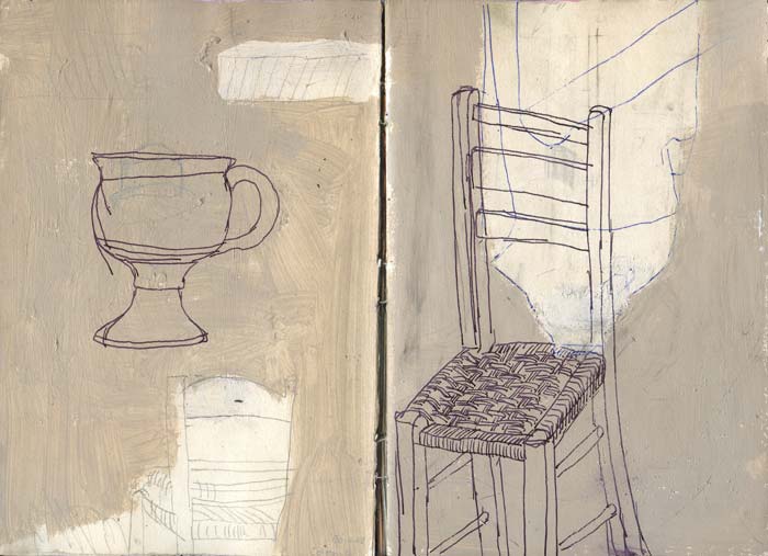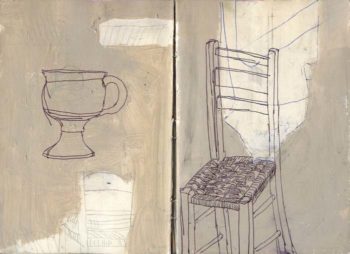 Gefäss und griechischer Stuhl (Anafi) 2010-Mischtechnik 30x21cm