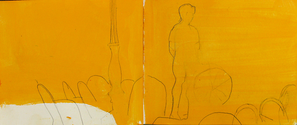 Gelbes Sofa (Lesbos) 2012-Mischtechnik 21x27cm